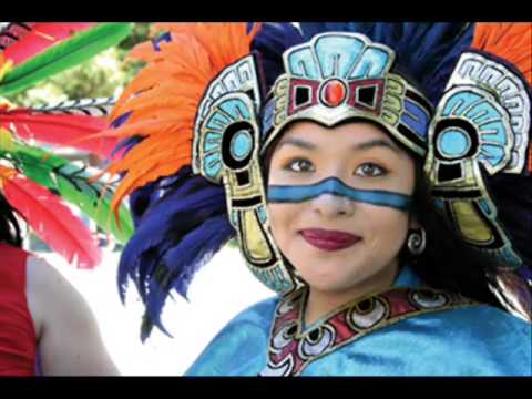 Aztec music uses pipes, drums and goes with a lot of colourful dancing with feathers!